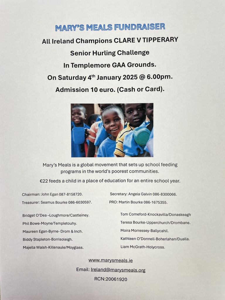 Get ready for an incredible evening of hurling action as All-Ireland Champions Clare take on Tipperary in a Senior Hurling Challenge Match – all in aid of Mary’s Meals Ireland!